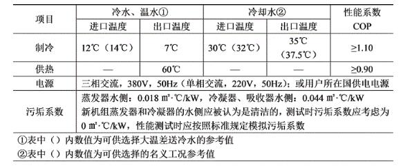 直燃型溴化鋰冷(溫)水機組用名義“性能系數”衡量機組性能,用COPc、COPh表示,單位為kW/kW。